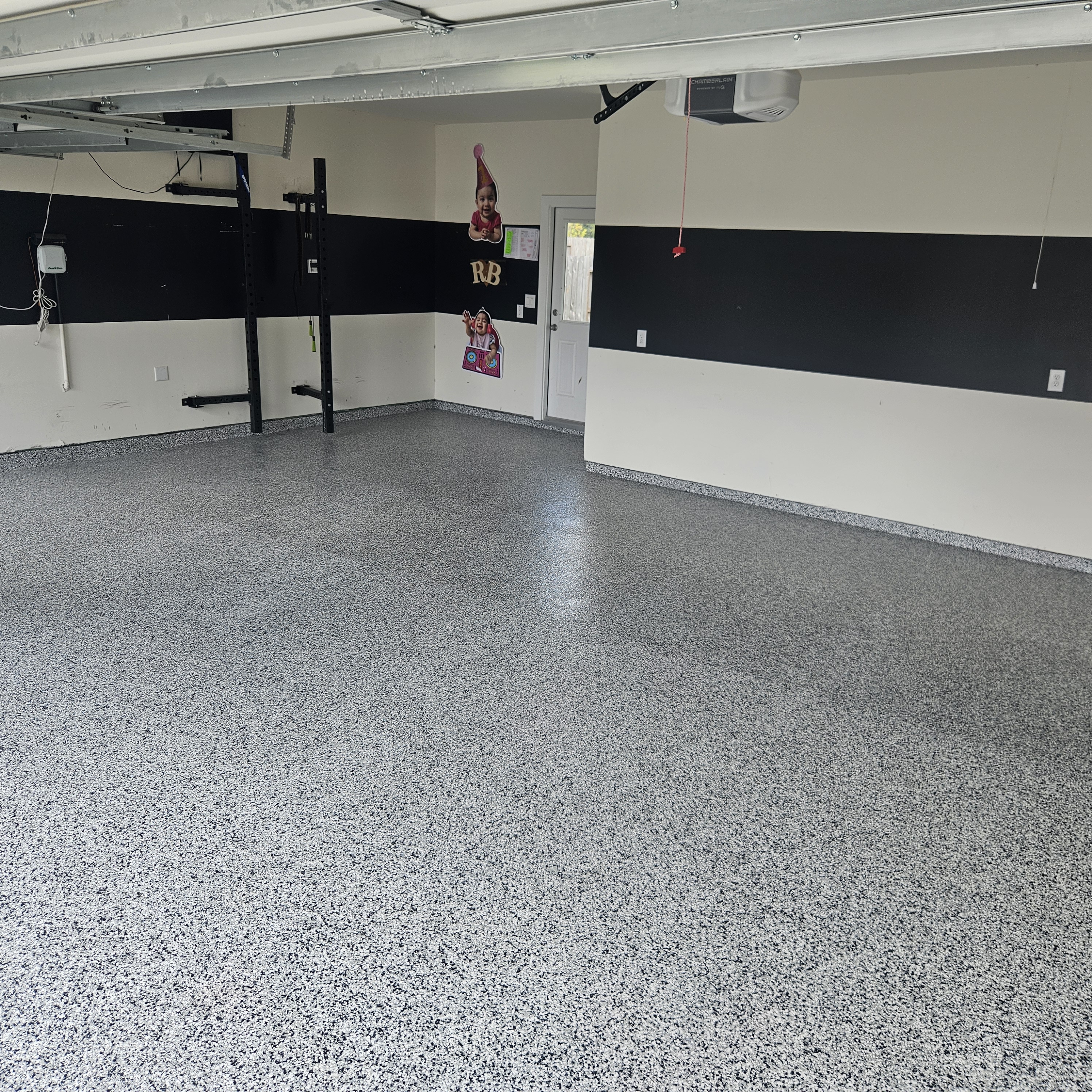 A multi-layered system comprising an epoxy base coat and vinyl flake chips, sealed with a polyaspartic or polyurethane topcoat. Water, stain, chip, and scratch-resistant — ideal for garages, patios, and busy commercial spaces.