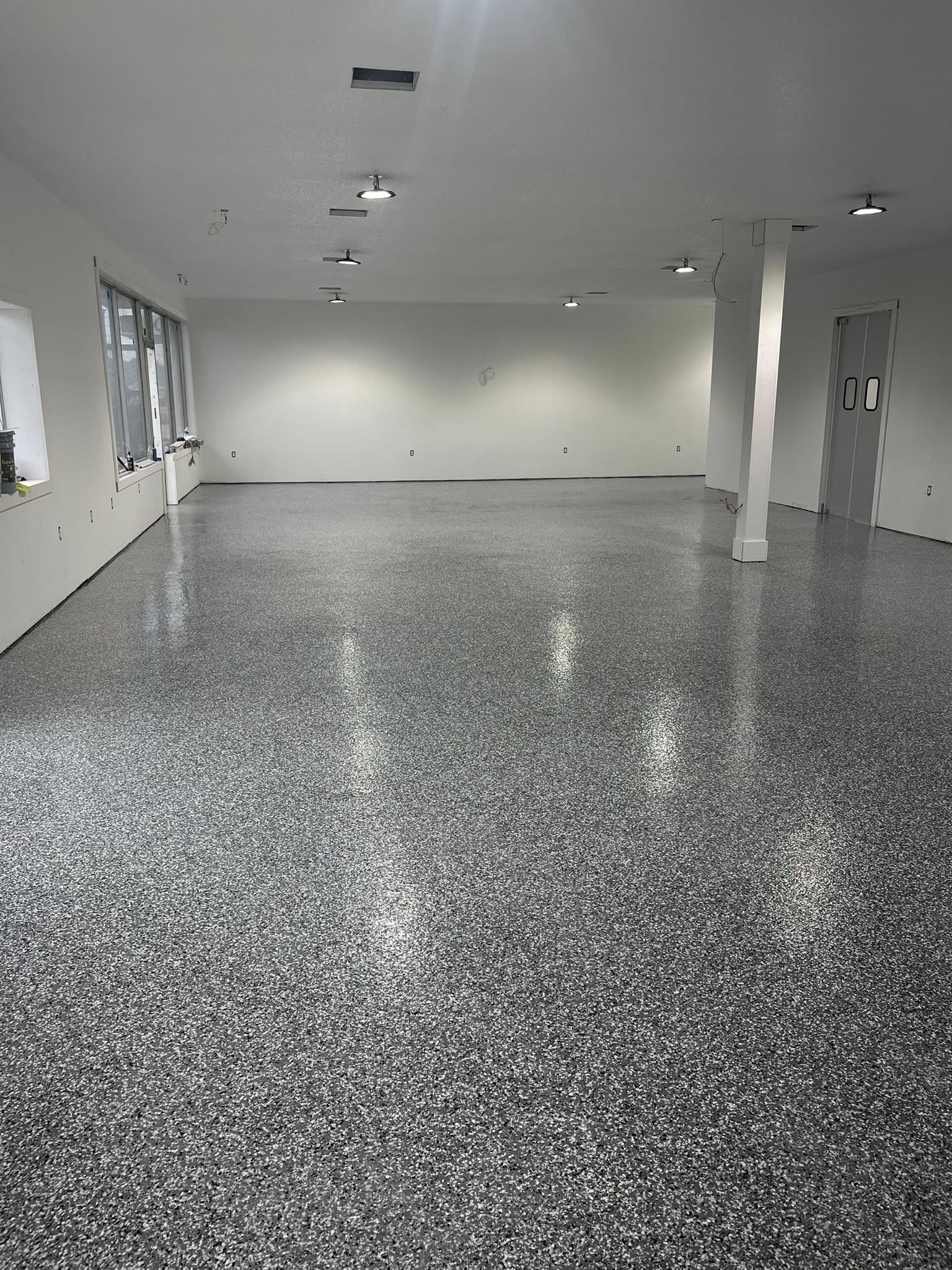 A multi-layered system comprising an epoxy base coat and vinyl flake chips, sealed with a polyaspartic or polyurethane topcoat. Water, stain, chip, and scratch-resistant — ideal for garages, patios, and busy commercial spaces.